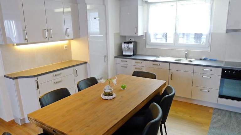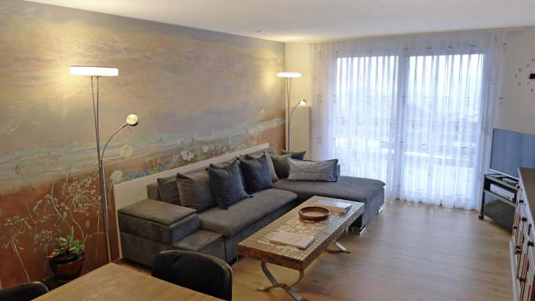 Die Lage der Ferienwohnung ermöglicht unmittelbaren Zugang zu Skipisten und attraktiven Velofahrmöglichkeiten in der Umgebung.