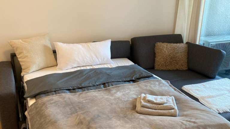 Die Ferienwohnung umfasst ein Schlafzimmer, ein Wohnzimmer sowie eine voll ausgestattete Küche mit Kühlschrank und Kaffeemaschine. Das Badezimmer ist mit einer Dusche und kostenlosen Pflegeprodukten ausgestattet. Handtücher und Bettwäsche sind ebenfalls vorhanden. Die Unterkunft bietet Klimaanlage und Zugang über einen Aufzug.