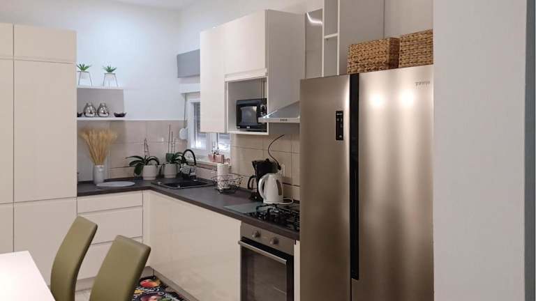 Die Unterkunft bietet eine voll ausgestattete Küche mit Kühlschrank und Kaffeemaschine, jedoch sind keine spezifischen Verpflegungsmöglichkeiten angegeben.