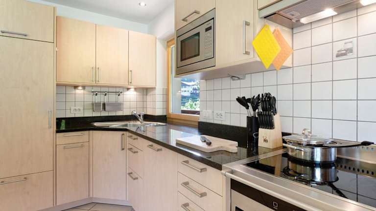 Die Ferienwohnung besteht aus zwei Schlafzimmern und einem Wohnzimmer. Eine voll ausgestattete Küche mit Kühlschrank und Kaffeemaschine ermöglicht die Zubereitung eigener Mahlzeiten. Des Weiteren sind zwei Badezimmer mit Dusche und kostenlosen Pflegeprodukten sowie Handtücher und Bettwäsche vorhanden.