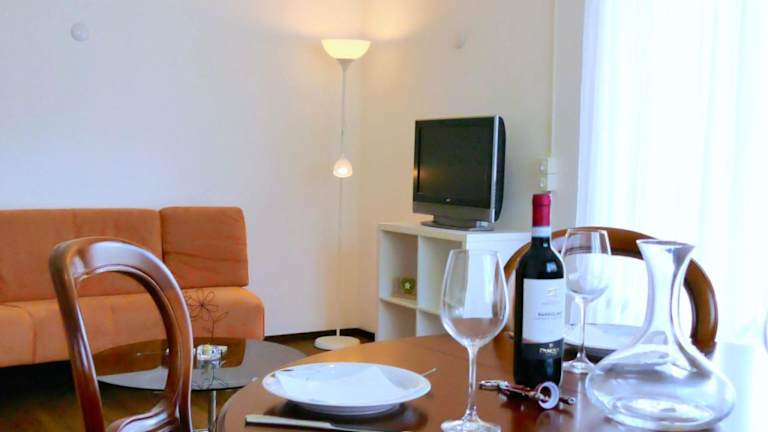 Das Apartment verfügt über eine gut ausgestattete Küche, die mit einem Kühlschrank, einem Geschirrspüler und einem Ofen ausgestattet ist. Es bietet außerdem ein Badezimmer mit einem Bidet und einem Haartrockner. Ein Babybett ist auf Anfrage verfügbar.
