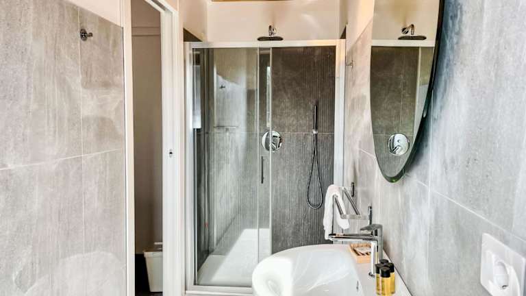 Die Ferienwohnung beinhaltet 2 klimatisierte Schlafzimmer und ist mit 2 Badezimmern ausgestattet, die über ein Bidet, eine Dusche und einen Haartrockner verfügen. Zudem gibt es einen Essbereich, der Platz für gemeinsame Mahlzeiten bietet.