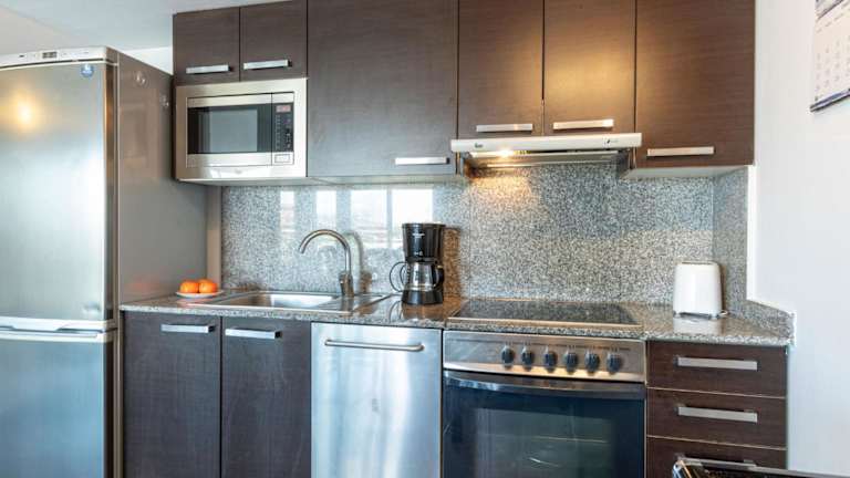 Das Apartment verfügt über 2 Schlafzimmer sowie einen TV. Die gut ausgestattete Küche beinhaltet einen Kühlschrank und einen Geschirrspüler. Ein Badezimmer mit Dusche ist ebenfalls vorhanden. Bettwäsche, Handtücher und Wäsche werden nach Richtlinien der örtlichen Behörden gewaschen.