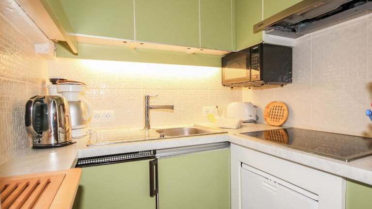 Die Ferienwohnung verfügt über 3 Schlafzimmer sowie 3 Badezimmer mit Dusche. In der gut ausgestatteten Küchenzeile befinden sich ein Kühlschrank und ein Geschirrspüler. Zudem ist ein TV mit Satellitenkanälen vorhanden.