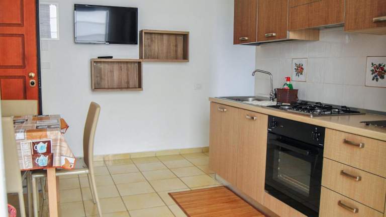 Das Apartment besteht aus einem separaten Schlafzimmer und einem Wohnzimmer. Eine voll ausgestattete Küchenzeile ist ebenfalls vorhanden, die mit einem Kühlschrank und einem Ofen ausgestattet ist. Es gibt ein Badezimmer sowie einen Fernseher. Auf Wunsch können Bettwäsche und Handtücher gegen eine Gebühr von EUR 15,00 gemietet werden.