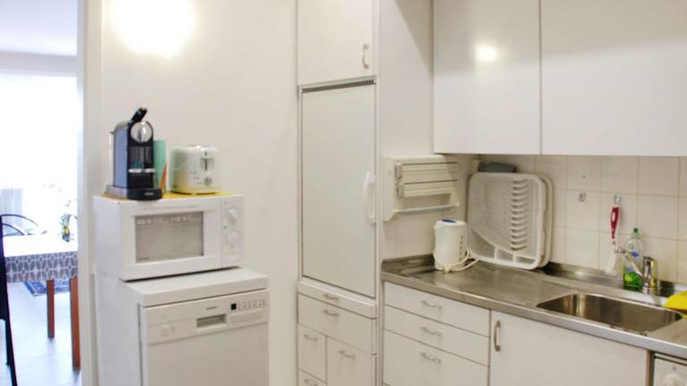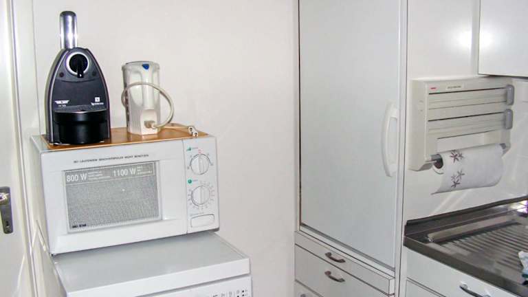 Die Küchenzeile ist modern ausgestattet mit einem Kühlschrank, einem Geschirrspüler, einem Ofen sowie einer Kaffeemaschine, was für die Zubereitung von Mahlzeiten sorgt. Es sind keine weiteren Informationen zu Verpflegungsmöglichkeiten vorhanden.