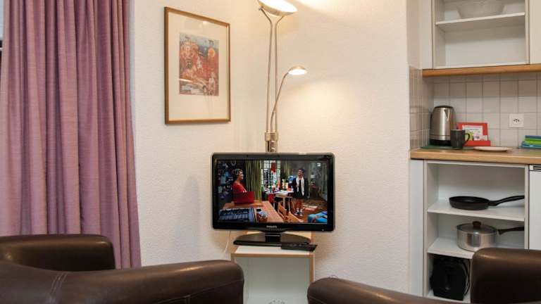 Die Ferienwohnung ist ausgestattet mit einem Wohnzimmer und einer voll ausgestatteten Küchenzeile, die einen Kühlschrank und einen Ofen umfasst. Zudem gibt es einen TV mit Kabelkanälen. Kostenloses WLAN steht ebenfalls zur Verfügung.