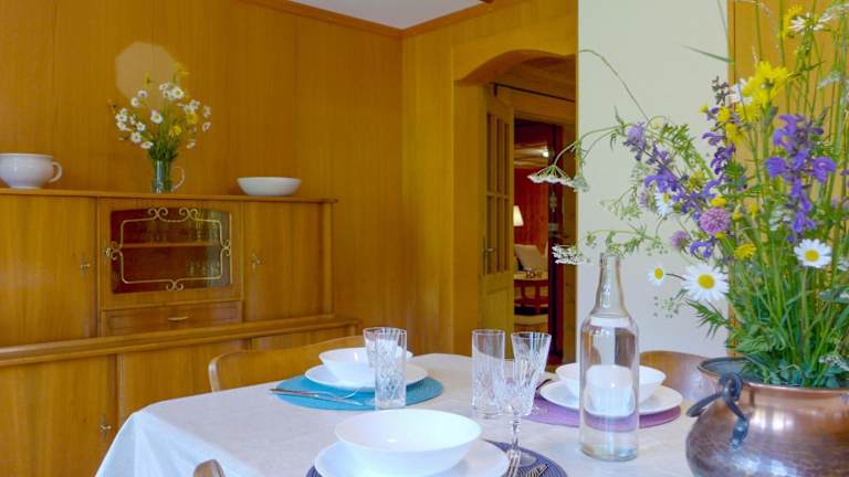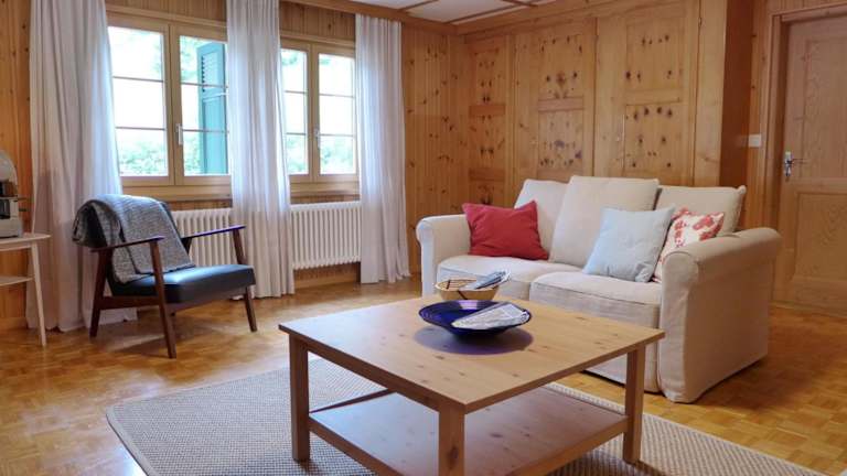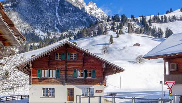 Die Unterkunft befindet sich in Schwenden im Kanton Bern, umgeben von einer malerischen Landschaft, die zahlreiche Möglichkeiten für Aktivitäten wie Skifahren und Velofahren bietet.