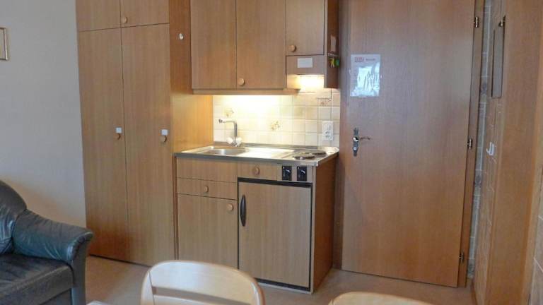 Die Ferienwohnung ist mit einem Balkon ausgestattet, der einen herrlichen Blick auf die Berge bietet. Neben einem komfortablen Schlafbereich verfügt die Unterkunft über eine gut ausgestattete Küchenzeile mit Kühlschrank, Mikrowelle und Herdplatte. Ein Badezimmer mit Dusche und Haartrockner sorgt für die notwendige Bequemlichkeit. Zusätzlich ist ein Satelliten-TV vorhanden.