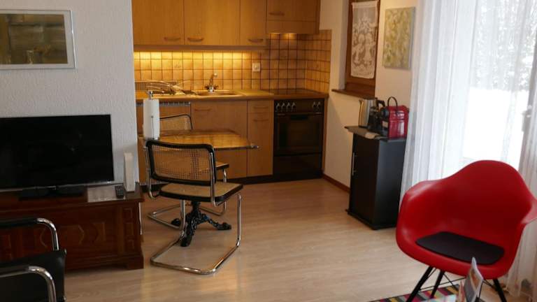 Die Ferienwohnung bietet direkten Zugang zur Skipiste, was einen bequemen Zugang zu den Skipisten ermöglicht. Zudem finden sich zahlreiche Wege in der Umgebung für Velofahrer und Wanderer zur Erkundung der Natur.