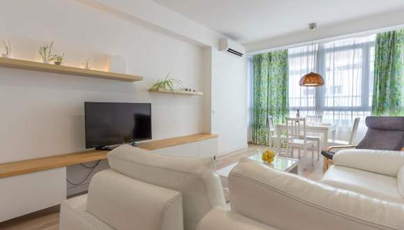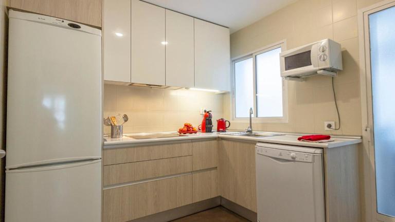 Die Ferienwohnung bietet zwei Schlafzimmer und eine Küche, die mit einem Kühlschrank sowie einem Geschirrspüler ausgestattet ist. Es stehen zwei Badezimmer mit einem Bidet und einer Badewanne zur Verfügung. Zudem gibt es einen Flachbild-TV.
