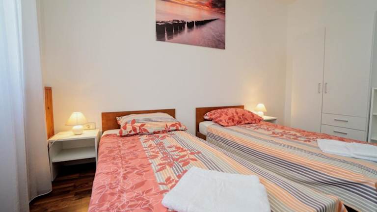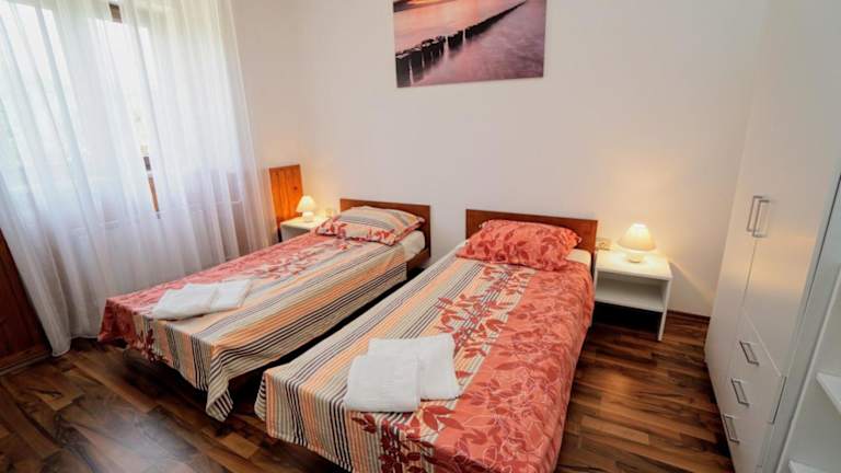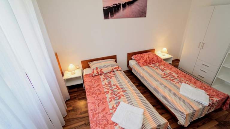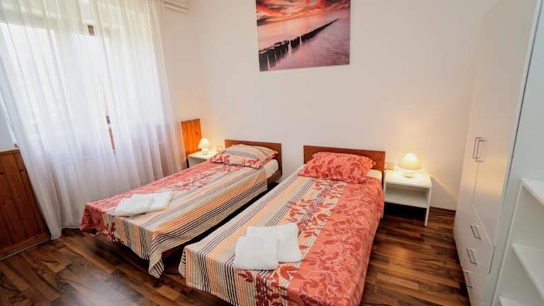 Das Apartment Cici bietet eine einladende Terrasse und ist mit Klimaanlage ausgestattet. Diese Ferienwohnung besteht aus 2 Schlafzimmern, einem Wohnzimmer, einer voll eingerichteten Küche mit Kühlschrank und Wasserkocher sowie einem Badezimmer mit Dusche. Die Unterkunft ermöglicht einen Aufenthalt in heimeliger Atmosphäre mit allen notwendigen Annehmlichkeiten.