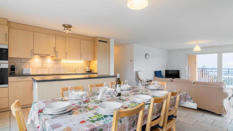 Die Ferienwohnung verfügt über eine gut ausgestattete Küche mit Kühlschrank, Geschirrspüler und Ofen. Sie hat zwei Badezimmer, die jeweils mit einer Dusche und einem Haartrockner ausgestattet sind. Zudem bietet sie einen Kabel Flachbild-TV.