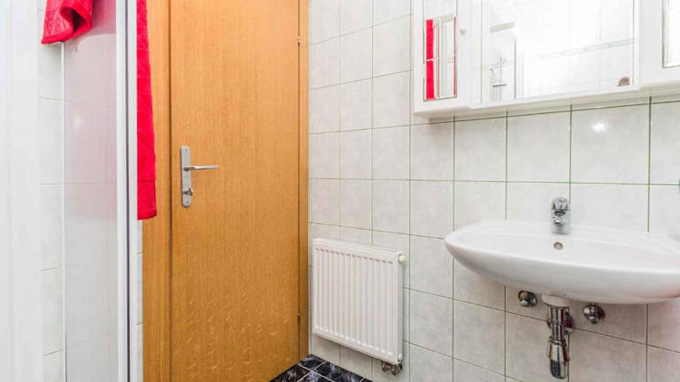 Die Ferienwohnung besteht aus 2 Schlafzimmern und einer gut ausgestatteten Küchenzeile, die mit Kühlschrank, Mikrowelle und Kaffeemaschine ausgestattet ist. Ein TV ist ebenfalls vorhanden, wodurch die Gäste das Heimgefühl während ihres Aufenthalts verstärken können.