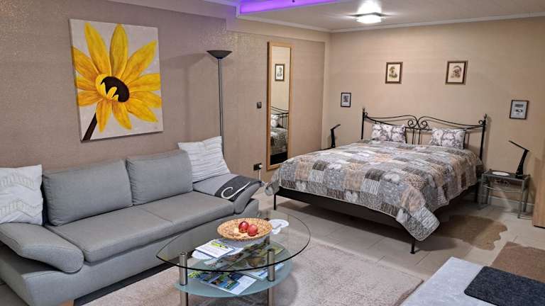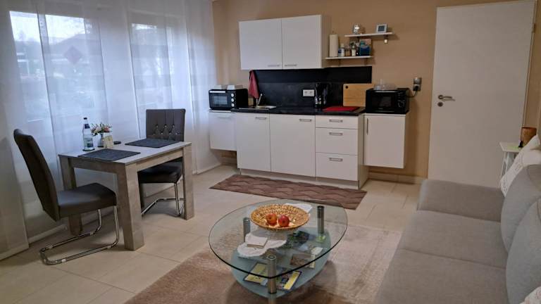Die Ferienwohnung verfügt über 1 Schlafzimmer und ist mit einer Küchenzeile ausgestattet, die einen Kühlschrank und einen Ofen umfasst. Zudem gibt es 1 Badezimmer mit Dusche und Haartrockner. Handtücher und Bettwäsche sind ebenfalls vorhanden.