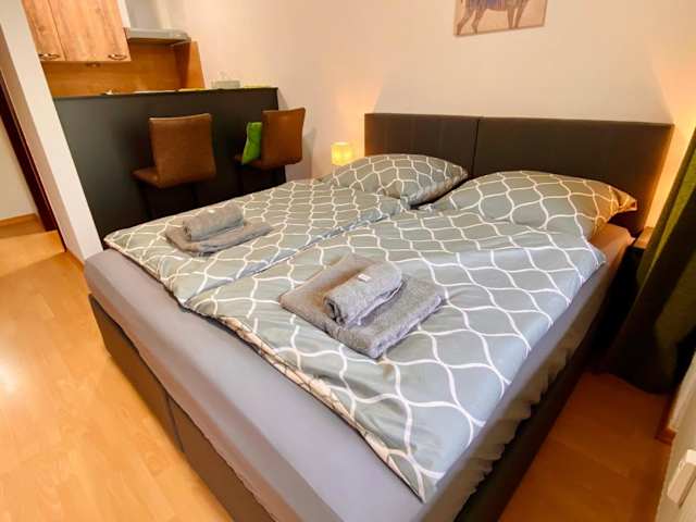 Die Ferienwohnung umfasst ein Schlafzimmer, ein Badezimmer, Bettwäsche, Handtücher, einen Flachbild-TV mit Satellitenkanälen, einen Essbereich sowie eine voll ausgestattete Küchenzeile. Zudem gibt es einen Balkon mit einem schönen Blick auf die Berge.