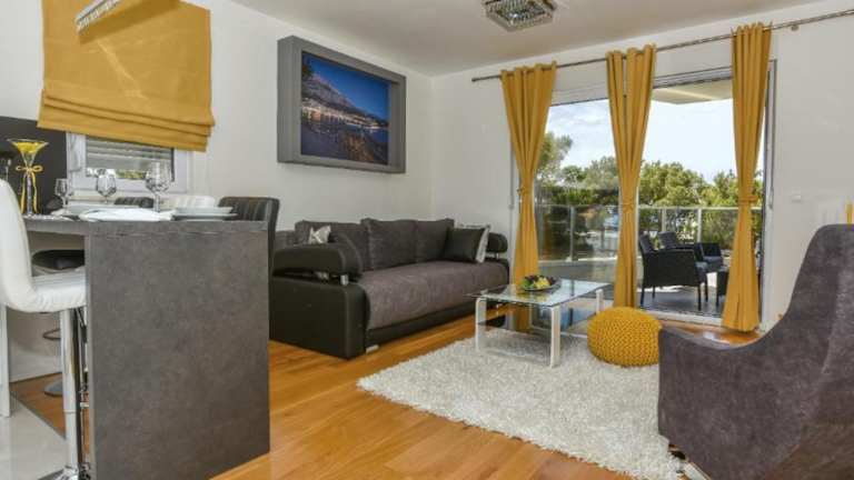 Apartment Đaninovica I bietet klimatisierte Übernachtungsmöglichkeiten mit schönem Meer- und Bergblick. Die Unterkunft umfasst einen Balkon und eine Terrasse, die zu entspannenden Momenten einladen.