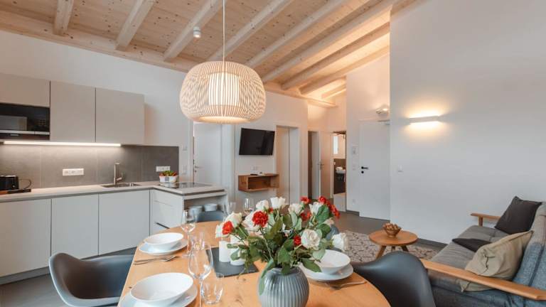 Die Ferienwohnung setzt sich aus 4 Schlafzimmern, einem Wohnzimmer und einer voll ausgestatteten Küche mit Kühlschrank und Kaffeemaschine zusammen. Zusätzlich gibt es 2 Badezimmer mit Dusche sowie einen TV.