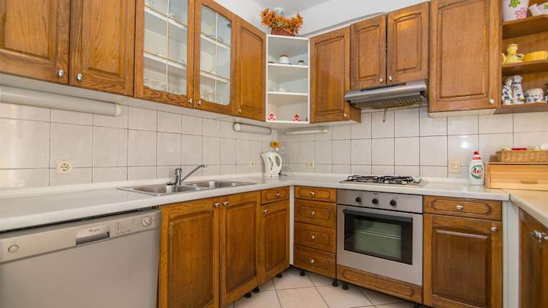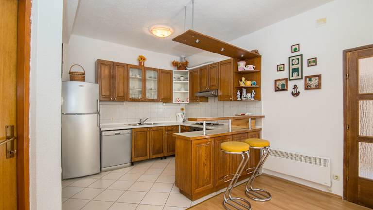 Die Ferienwohnung verfügt über eine moderne Küche, die mit einem Kühlschrank und einem Geschirrspüler ausgestattet ist. Zudem gibt es Satelliten-TV und gratis Wifi in der gesamten Unterkunft.