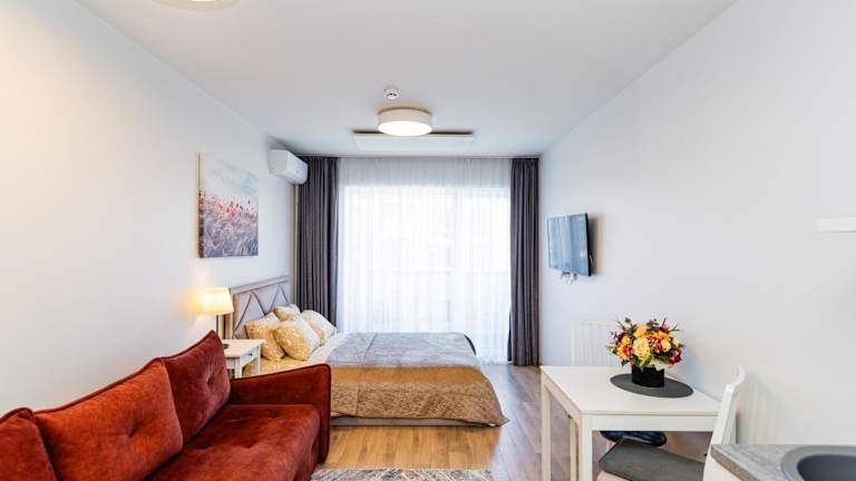 Das Apartment Diana bietet eine komfortable Unterkunft in Palanga, nur wenige Gehminuten von verschiedenen Sehenswürdigkeiten entfernt. Das Apartment verfügt über ein Schlafzimmer, ein Badezimmer, eine voll ausgestattete Küche und einen Balkon mit Poolblick. WLAN ist in allen Bereichen kostenlos verfügbar. Die Unterkunft ist ideal für Reisende, die die Attraktionen von Palanga erkunden möchten.