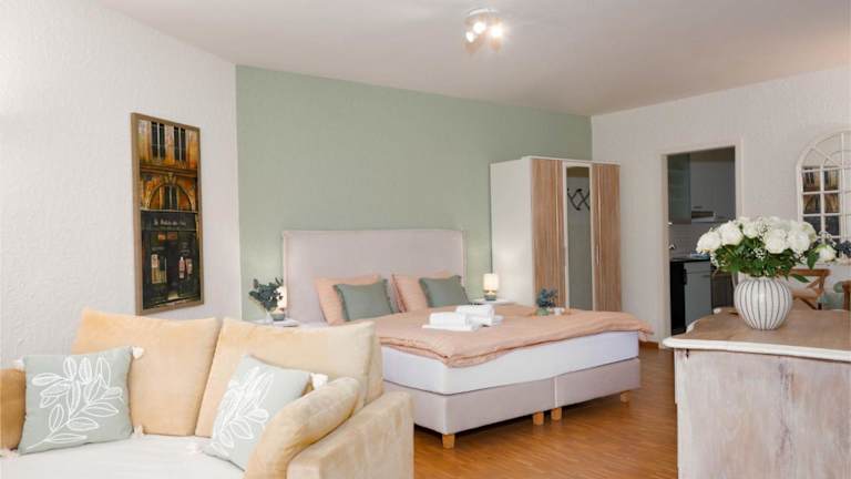 Die Ferienwohnung verfügt über ein Wohnzimmer und eine voll ausgestattete Küchenzeile mit Kühlschrank und Ofen. Ein TV mit Satellitenkanälen sorgt für Unterhaltung. Kostenloses Wifi ist in der ganzen Unterkunft verfügbar und es gibt eine Parkiermöglichkeit vor Ort.