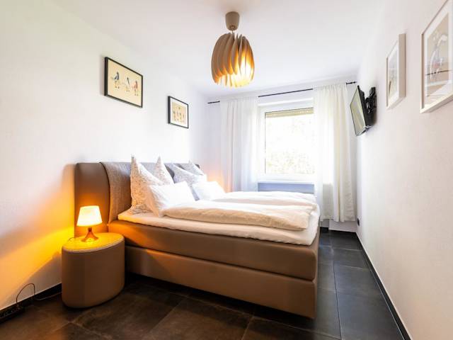 Die Ferienwohnung besteht aus 3 Schlafzimmern und einem Wohnzimmer. Weiterhin bietet die voll ausgestattete Küche einen Kühlschrank sowie eine Kaffeemaschine. Das Badezimmer ist mit einer Dusche und einem Haartrockner ausgestattet. Handtücher und Bettwäsche werden den Gästen zur Verfügung gestellt.