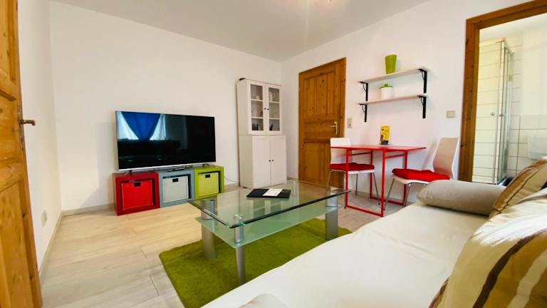 Das Apartment verfügt über ein Schlafzimmer, ein Wohnzimmer mit Flachbild-TV und Satellitenkanälen sowie eine voll ausgestattete Küchenzeile mit Kühlschrank und Mikrowelle. Ein Badezimmer mit Dusche ist ebenfalls vorhanden. Handtücher und Bettwäsche werden bereitgestellt.