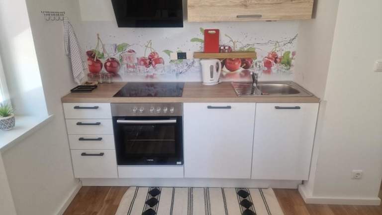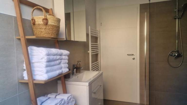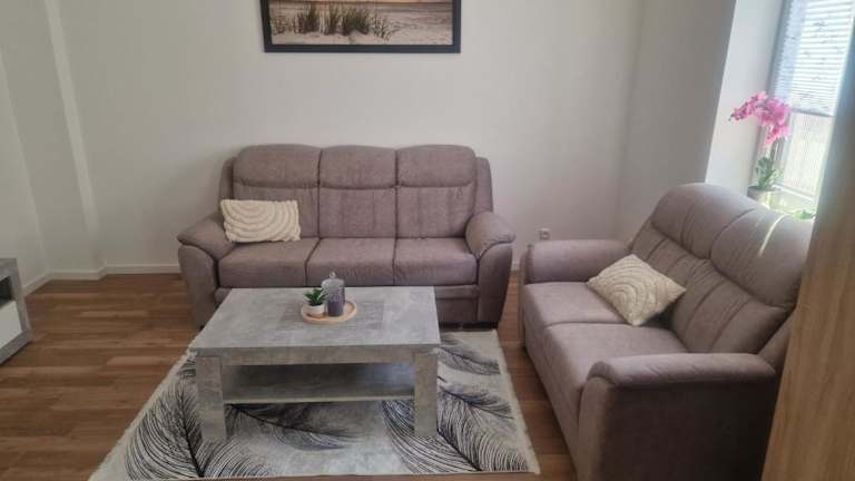 Das Apartment hat ein Schlafzimmer und ist komplett ausgestattet mit einer Küche, die über einen Kühlschrank und einen Geschirrspüler verfügt. Ein Flachbild-TV sowie ein Sitzbereich sind ebenfalls vorhanden. Das Badezimmer ist mit einer Dusche ausgestattet, und es werden sowohl Handtücher als auch Bettwäsche bereitgestellt.