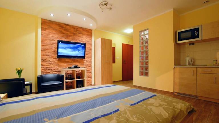 Das Apartamenty Energo bietet moderne Unterkünfte mit kostenfreiem WLAN und Klimaanlage. Die eleganten Apartments sind individuell dekoriert und verfügen über eine Küchenzeile, ein geräumiges Wohnzimmer und ein eigenes Bad. Ein Auto mit Fahrer kann ebenfalls in Anspruch genommen werden. Kostenfreie Parkiermöglichkeiten sind vorhanden.