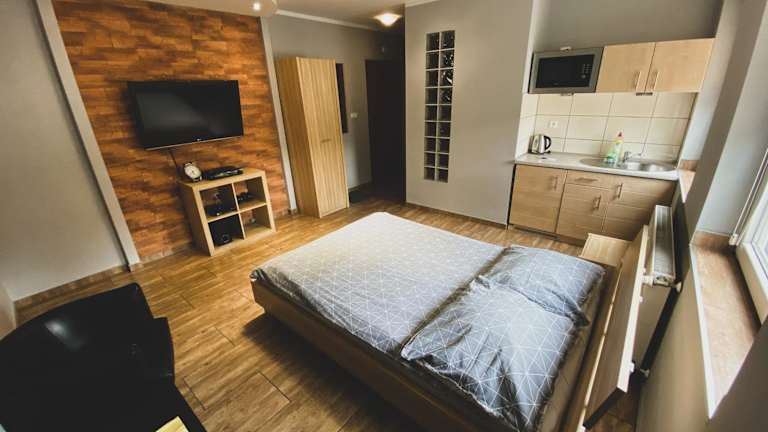 Das Apartamenty Energo liegt 2 km vom Stadtzentrum von Bytom entfernt und bietet eine gute Anbindung an die Autobahn A1, die in nur 8 Fahrminuten erreichbar ist. In der Umgebung befinden sich zahlreiche Parks für entspannte Spaziergänge. Das Einkaufszentrum Agora erreichen Sie nach 5 Fahrminuten. Der Bahnhof Bytom Główny befindet sich 2,5 km entfernt.