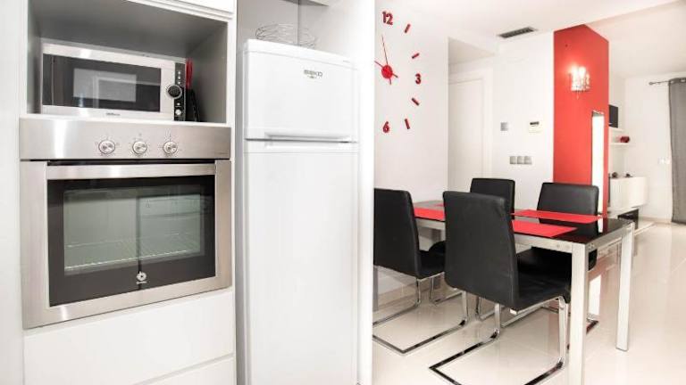 Die Ferienwohnung mit Klimaanlage besteht aus zwei Schlafzimmern, einem Wohnzimmer und einer voll ausgestatteten Küche, die mit einem Kühlschrank und einer Kaffeemaschine ausgestattet ist. Des Weiteren verfügt die Unterkunft über zwei Badezimmer mit Dusche und Haartrockner. Handtücher und Bettwäsche werden bereitgestellt.