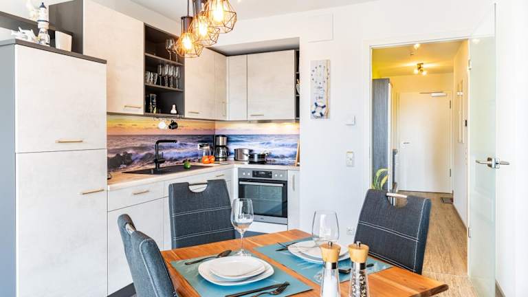 Das Apartment "Farben der Küste" – Haffresidenz bietet eine heimelige Atmosphäre und verfügt über eine Sonnenterrasse sowie eine Gemeinschaftsküche. Die Unterkunft ist ideal für Gäste, die eine entspannende Zeit verbringen möchten und verschiedene Freizeitmöglichkeiten suchen. Zusätzliche Annehmlichkeiten wie eine Sauna und gemeinschaftliche Aufenthaltsräume sorgen für eine angenehme Bequemlichkeit.