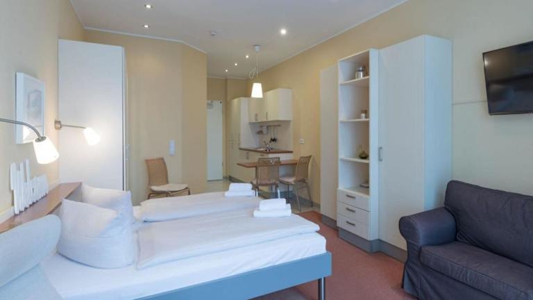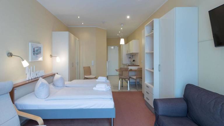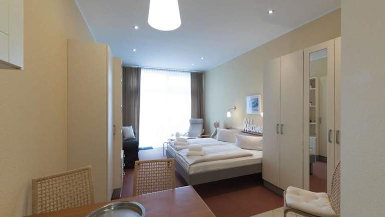 Die Ferienwohnung besteht aus einem Wohnzimmer und einer voll ausgestatteten Küche. Handtücher und Bettwäsche sind im Apartment verfügbar.