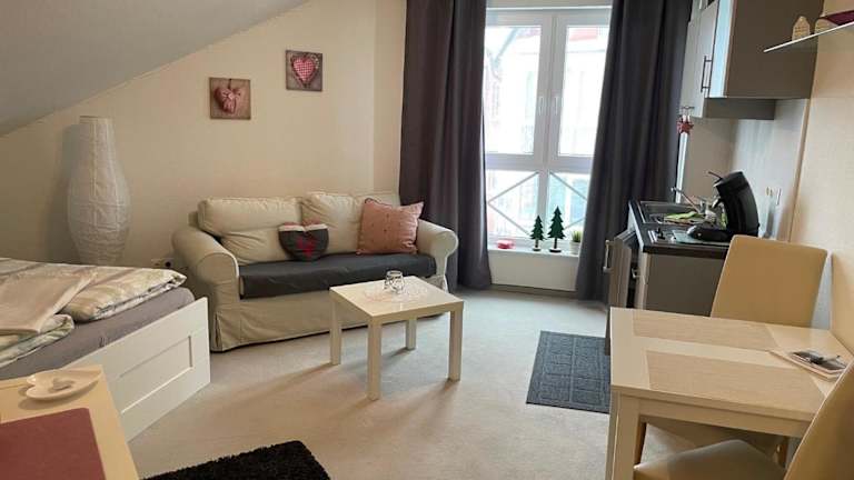 Die Ferienwohnung ist ausgestattet mit einem Satelliten Flachbild-TV und einer Küchenzeile, die über Kühlschrank, Herdplatte, Toaster, Kaffeemaschine und Wasserkocher verfügt. Handtücher und Bettwäsche sind nicht im Preis enthalten und können gegen Aufpreis entliehen werden.