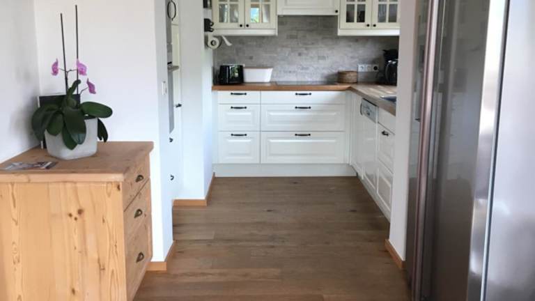 Die Ferienwohnung umfasst ein Wohnzimmer mit einem Sitz- und Essbereich, eine gut ausgestattete Küche mit Kühlschrank, Geschirrspüler und Ofen, sowie 2 Schlafzimmer und 2 Badezimmer mit Dusche und Badewanne. Handtücher und Bettwäsche werden bereitgestellt.