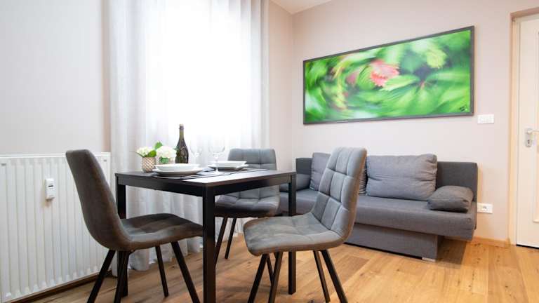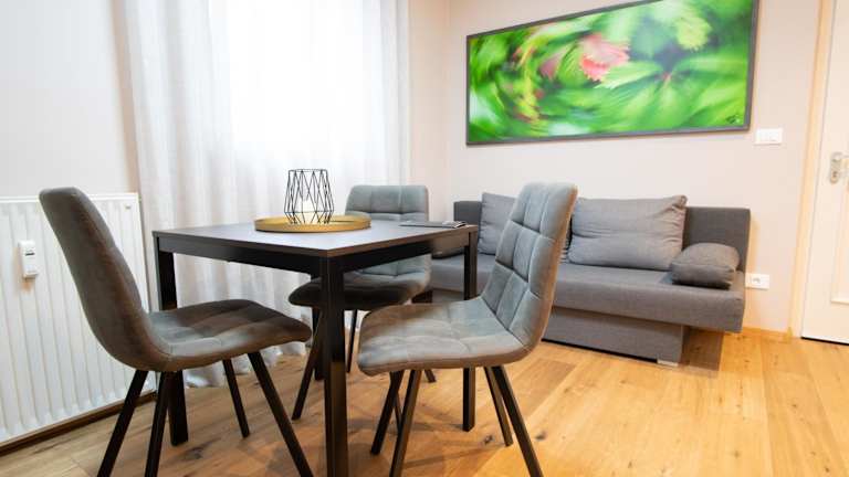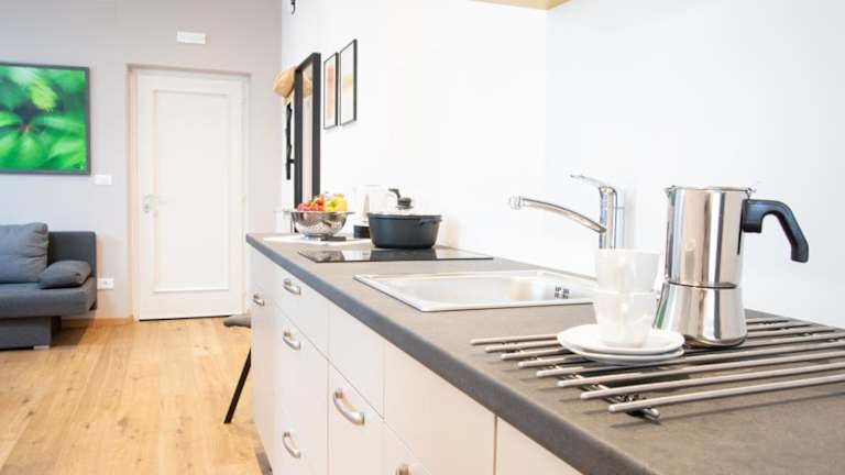 Die Ferienwohnung verfügt über 1 Schlafzimmer, ein Wohnzimmer und eine voll ausgestattete Küche mit einem Kühlschrank und einer Kaffeemaschine. Das Bad ist mit einer Dusche und einem Haartrockner ausgestattet. Handtücher und Bettwäsche werden zur Verfügung gestellt.
