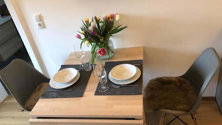 Jedes Apartment beinhaltet eine voll ausgestattete Küche, in der Gäste selbstständig kochen können. Zur Ausstattung gehören ein Kühlschrank, eine Herdplatte, eine Kaffeemaschine und ein Wasserkocher.