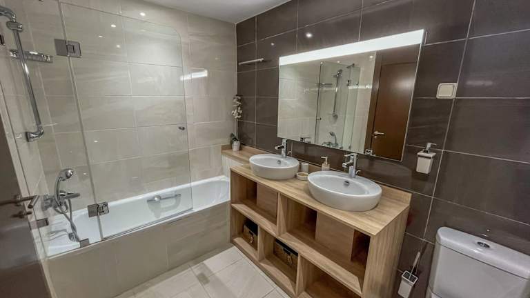 Die Ferienwohnung besteht aus 2 Schlafzimmern und bietet eine voll ausgestattete Küche mit Kühlschrank und Geschirrspüler. Ein Flachbild-TV und ein Sitzbereich sind ebenfalls vorhanden. Die Unterkunft verfügt über 2 Badezimmer, eines davon mit Bidet. Handtücher und Bettwäsche werden bereitgestellt.