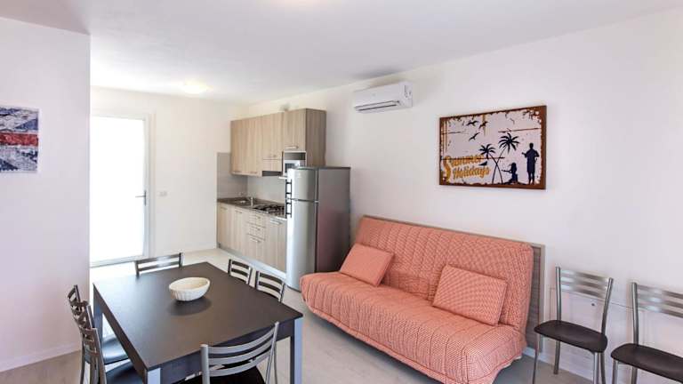 Die Ferienwohnung besteht aus einem Schlafzimmer, einem Wohnzimmer und einer voll ausgestatteten Küchenzeile mit Kühlschrank und Kaffeemaschine. Das Badezimmer ist mit einem Bidet und einer Dusche ausgestattet. Es gibt zudem einen TV mit Satellitenkanälen. Handtücher und Bettwäsche können gemietet werden.