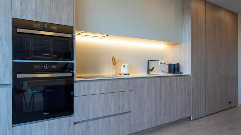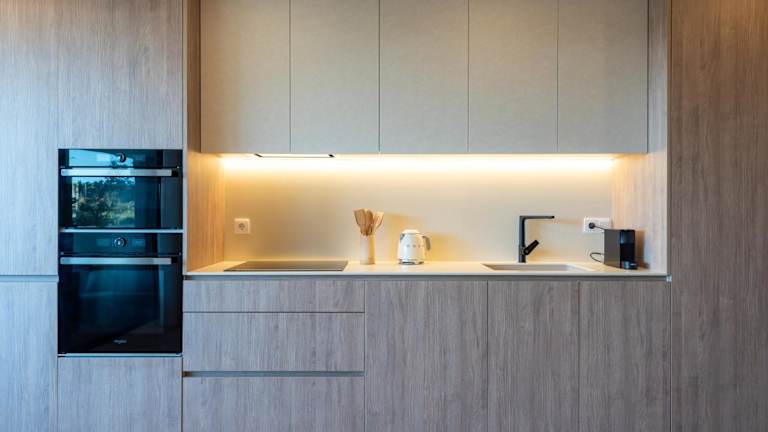 Die Ferienwohnung besteht aus zwei Schlafzimmern, einem Wohnzimmer sowie einer voll ausgestatteten Küche, die unter anderem mit einem Kühlschrank und einer Kaffeemaschine ausgestattet ist. Das Badezimmer verfügt über eine Dusche und einen Haartrockner. Handtücher und Bettwäsche werden bereitgestellt, und alle Räume sind klimatisiert. Die Zimmer sind schallisoliert und Nichtraucherzonen. Es sind Familienzimmer verfügbar.