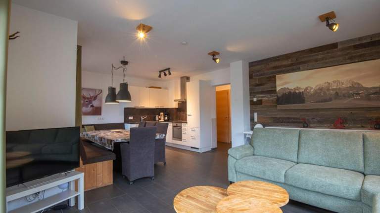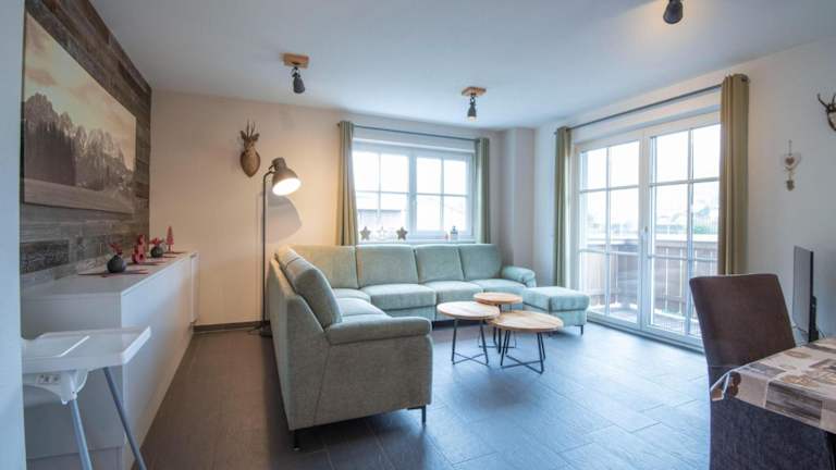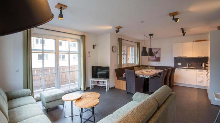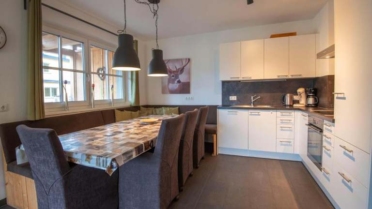 Die Ferienwohnung umfasst 3 Schlafzimmer, ein Wohnzimmer mit TV, sowie eine gut ausgestattete Küche mit Kühlschrank und Geschirrspüler. Zu den Annehmlichkeiten gehören zwei Badezimmer mit Dusche, sowie eine gemütliche Einrichtung mit schönem Seeblick.