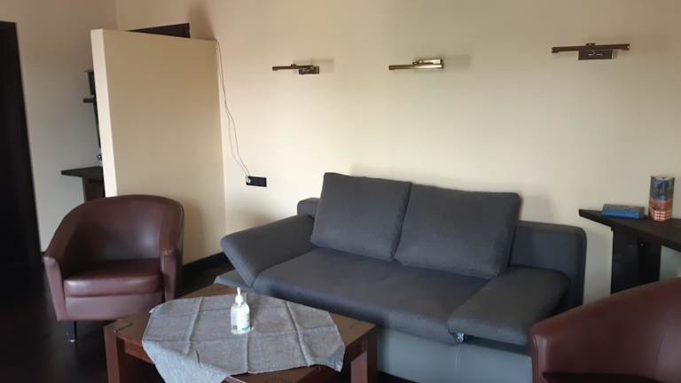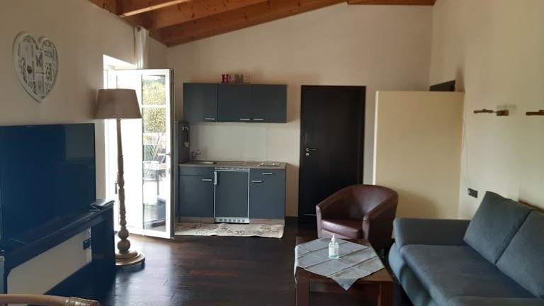 Die Wohnung verfügt über ein Schlafzimmer, ein Wohnzimmer und eine gut ausgestattete Küchenzeile mit Kühlschrank und Ofen. Handtücher und Bettwäsche werden bereitgestellt.
