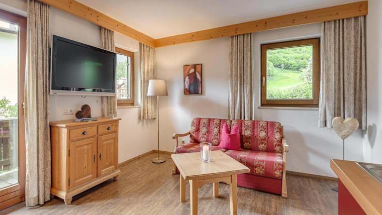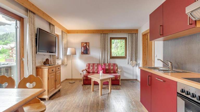 Die Wohnung verfügt über einen Balkon sowie ein Schlafzimmer und ein Wohnzimmer. In der gut ausgestatteten Küche sind ein Kühlschrank und ein Geschirrspüler vorhanden. Zudem gibt es einen TV mit Kabelkanälen. Die Terrasse lädt zum Verweilen ein.