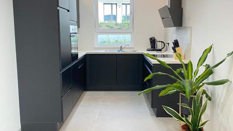 In der Unterkunft steht eine vollausgestattete Küche mit Kühlschrank, Geschirrspüler und Ofen zur Verfügung. Es können Essenslieferungen in die Unterkunft angefordert werden.