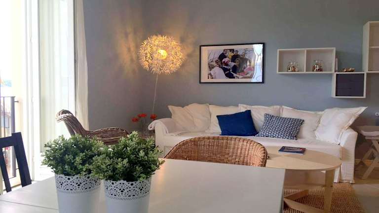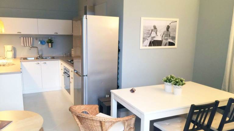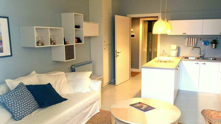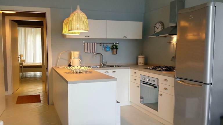 Die Ferienwohnung besteht aus einem Schlafzimmer und einem Wohnzimmer, das mit einem TV mit Satellitenkanälen ausgestattet ist. Die voll ausgestattete Küche beinhaltet einen Kühlschrank und einen Geschirrspüler. Es stehen zudem zwei Badezimmer mit einem Bidet zur Verfügung.