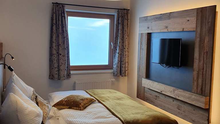 Die Unterkunft ist eine geräumige Ferienwohnung mit Balkon und schöner Aussicht auf die Berge. Sie bietet Gästen einen heimeligen Rückzugsort nach einem Tag auf den Pisten.