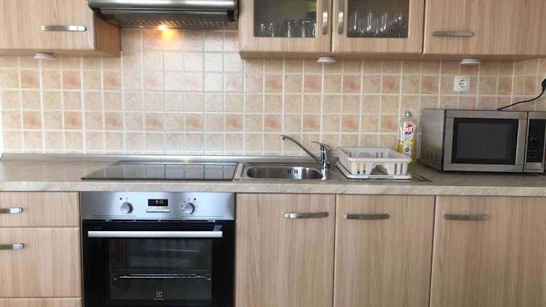 Die Ferienwohnung besteht aus 2 Schlafzimmern, einem Wohnzimmer, einer voll ausgestatteten Küchenzeile mit Kühlschrank und Wasserkocher sowie einem Badezimmer mit Dusche und Haartrockner. Ausserdem gibt es einen Fernseher mit Satellitenkanälen. Der Zugang zu einem Balkon ergänzt die Bequemlichkeit der Unterkunft.