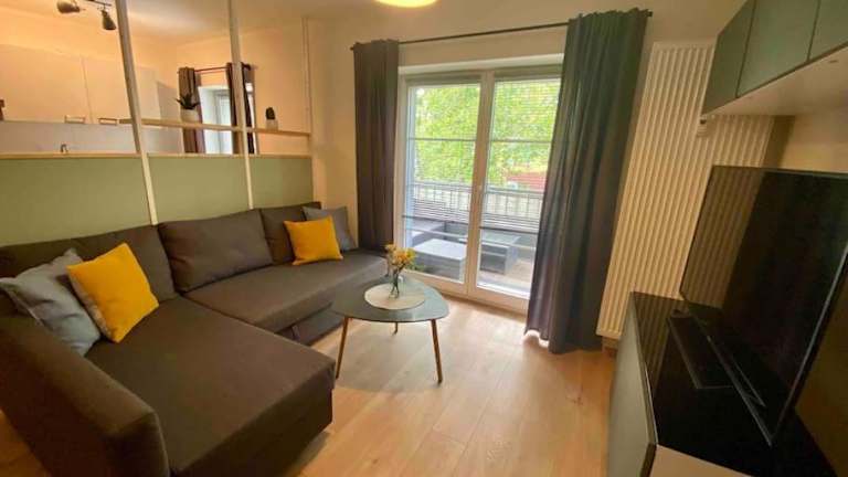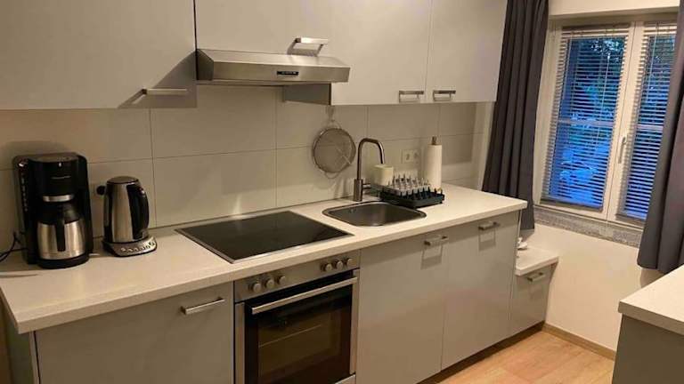 Das Apartment besteht aus einem Schlafzimmer, einem Wohnzimmer sowie einer voll ausgestatteten Küche mit Kühlschrank und Kaffeemaschine. Zudem bietet es ein Badezimmer mit Dusche und Haartrockner. Zu den Annehmlichkeiten gehören kostenloses Wifi, ein Flachbild-TV, Balkon und Terrasse. Handtücher und Bettwäsche werden bereitgestellt.