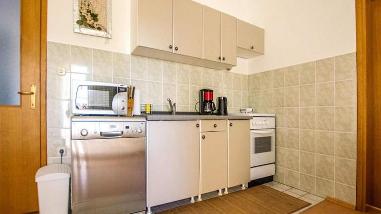 Die Ferienwohnung verfügt über 2 Schlafzimmer, ein Wohnzimmer mit TV, eine gut ausgestattete Küche mit Kühlschrank und Geschirrspüler sowie ein Badezimmer mit Dusche.