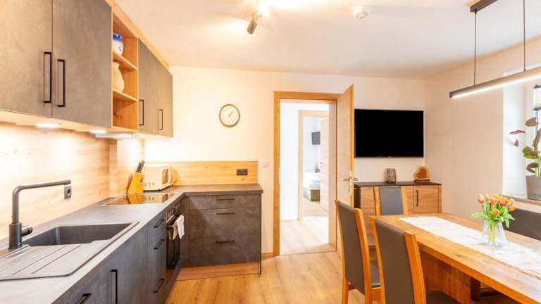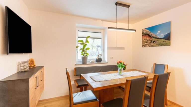 Die Ferienwohnung bietet eine heimelige Terrasse und ist ideal für aktive Feriengäste. Sie verfügt über eine Ausrüstung zur Skilagerung und kostenlose Parkiermöglichkeiten.